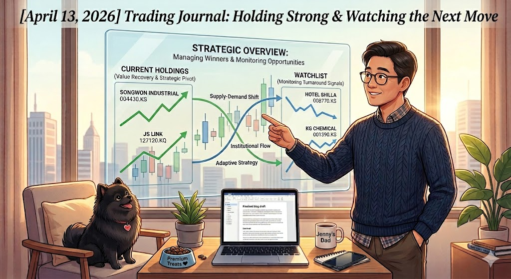 Trading is not just about pressing the buy button every day. It is about staying disciplined enough to let the market confirm your thesis. Today felt less like a day for aggressive action and more like a day for observation — tracking margin-defense behavior in Songwon, execution risk and opportunity in JS Link, turnaround potential in Hotel Shilla, and a mixed commodity-value setup in KG Chemical.